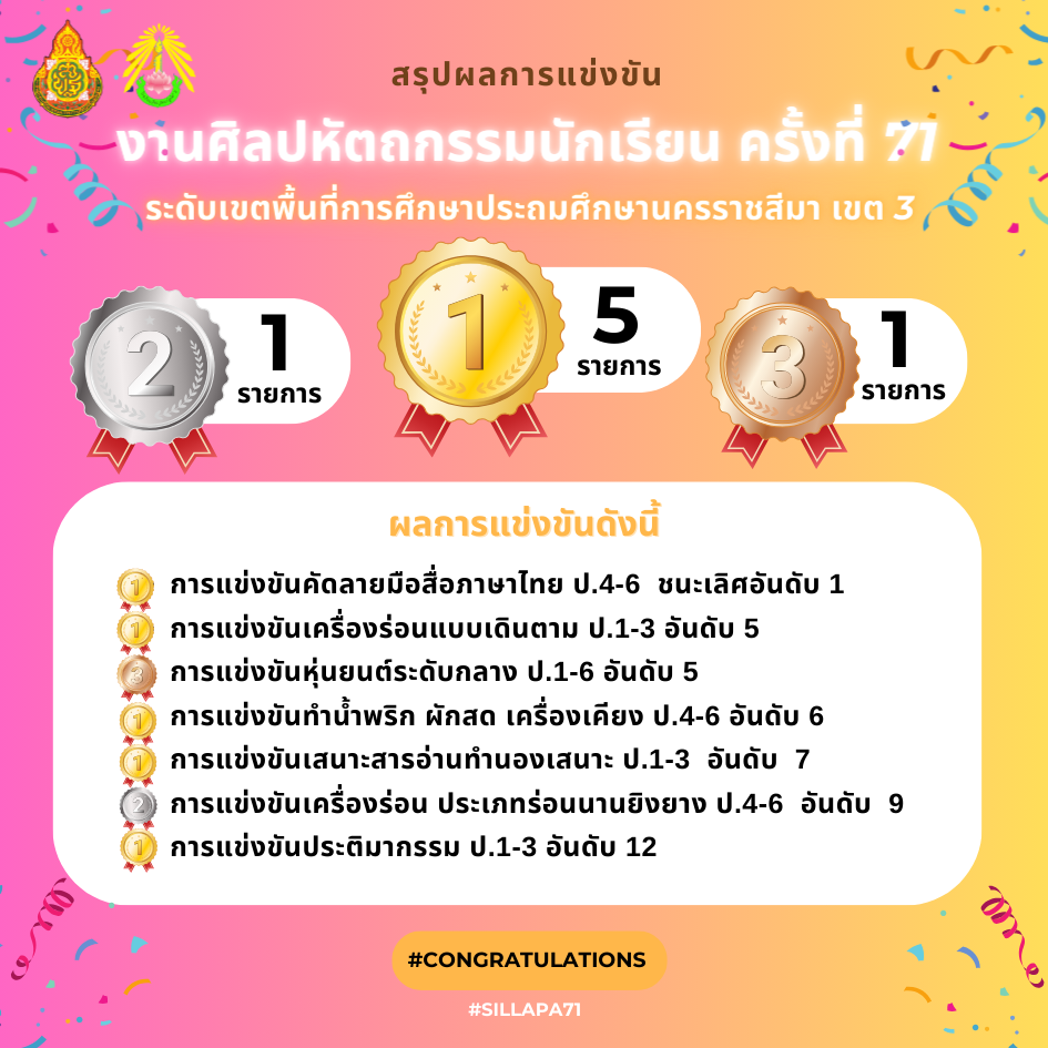 ขอเเสดงความยินดีกับนักเรียนที่เข้าร่วมการเเข่งขันศิลปหัตถกรรมนักเรียน ครั้งที่ 71